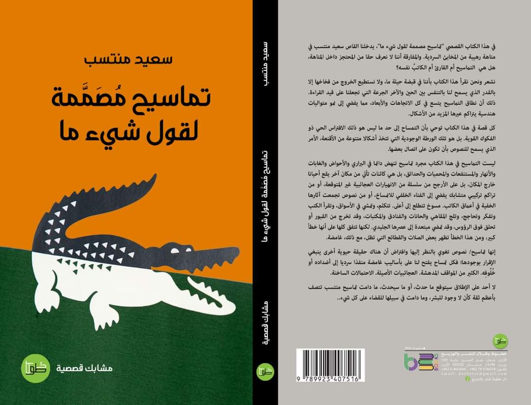 آربريس / سيصدر قريبا عن #دار_خطوط_و_ظلال للروائي والقاص المغربي #سعيد_منتسب المجموعة القصصية المختلفة وهي #مشابك_قصصية بعنوان “تماسيح مصممة لقول شيء ما”، حيث يدخلنا القاص سعيد منتسب في متاهة رهيبة من المخابئ السردية. والمفارقة أننا لا نعرف حقا من المحتجز داخل المتاهة، هل هي التماسيح أم القارئ أم الكاتبُ نفسه؟