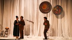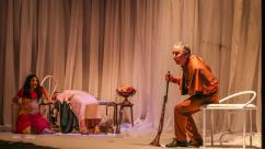 أما الفضاء المسرحي، فيتسم بالانغلاق: بيت “الرايس” رمز القلعة السلطوية، لكنه يتحول إلى مسرح للفضائح والعنف الدموي. الانغلاق هنا ليس مكانياً فقط، بل نفسياً أيضاً؛ فالشخصيات محاصرة داخل رغباتها وغرائزها، ولا تجد خلاصاً إلا عبر الانفجار.