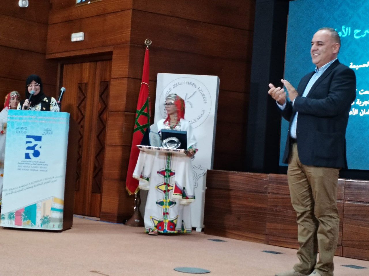 عن هاته الجائزة ،يقول مدير الفرقة فؤاد البنوضي ،انها الثالثة لفرقة ثفسوين خلال مسارها بعد تتويجها خلال سنوات 2010 بمسرحية توت نين زو ، و 2016 بمسرحية بيريكولا ، ها هي اليوم تفوز بنفس الجائزة – الجائزة الوطنية للثقافة الامازيغية صنف المسرح –عن عملها المسرحي الناجح “اشاوشاون” سلمت للفرقة خلال احدى فقرات الاحتفال بالدورة الثالثة و العشرين لذكرى خطاب اجدير السامي و تأسيس المعهد الملكي للثقافة الامازيغية، بمقر المعهد بالرباطيوم الخميس 17 أكتوبر 2024. و يواصل المتحدث في قوله ان فرقة ثفسوين و منذ تأسيسها سنة 2004 كانت من بين اهدافها العمل على انتاج اعمال مسرحية تمثل مستوى جد مشرف للثقافة و الفن الامازيغيين , و هاته ما هي الا نتيجة العمل المتميز و الجاد لكل أعضاء الجمعية و الفرقة المسرحية و تفانيهم المتواصل في إيصال الثقافة الامازيغية الى مستويات عليا و جد مشرفة.