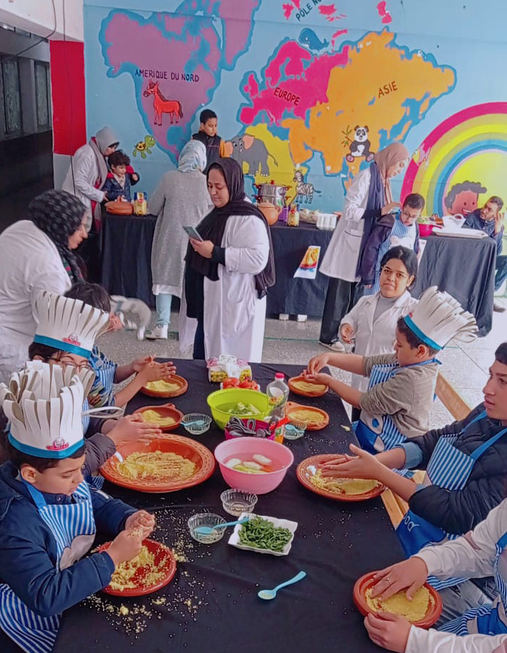 المدرسية (AVS)، لتعزيز مهاراتهن في مرافقة الأطفال اليومية، مع القيام بتوعية 30 شخصا من أولياء الأمور، حول أهمية التربية الدامجة، والإعاقة عبر لقاءات وورشات للتوعية والتعبئة، وأثرت هذه اللقاءات النقاشات وكانت فرصة لتبادل مثمر، وساهمت في إعداد دلائل عملية ستشكل مرجعية لأولياء الأمور في فهم الإعاقة، وللمؤسسات التعليمية الأخرى التي تسعى لاعتماد نهج دامج، باعتبارها أدوات للممارسات الفضلى في مجال المرافقة من زوايا متعددة. إلى جانب ذلك، كانت هناك ورشات تربوية وعلاجية مهمة، إذ نظم المشروع ورشات أسبوعية لفائدة 30 طفلا في وضعية إعاقة، مع إدماجهم مع باقي الأطفال، لتطوير استقلاليتهم ومهاراتهم الاجتماعية وتعزيز رفاههم العام. تطرقت هذه الورشات إلى أربعة محاور رئيسية، كل منها ساهم في تلبية احتياجات الأطفال الخاصة وتعزيز تطورهم. وبلغ عدد الورشات 71 ورشة موزعة بين ورشات البستنة واكتشاف الطبيعة، وورشات الطهي، إضافة إلى ورشات الفن والثقافة، ما جعلت من المناسبات الوطنية والدولية فرصة للتثقيف والتعرف على خصوصيات المناسبة وسياقاتها