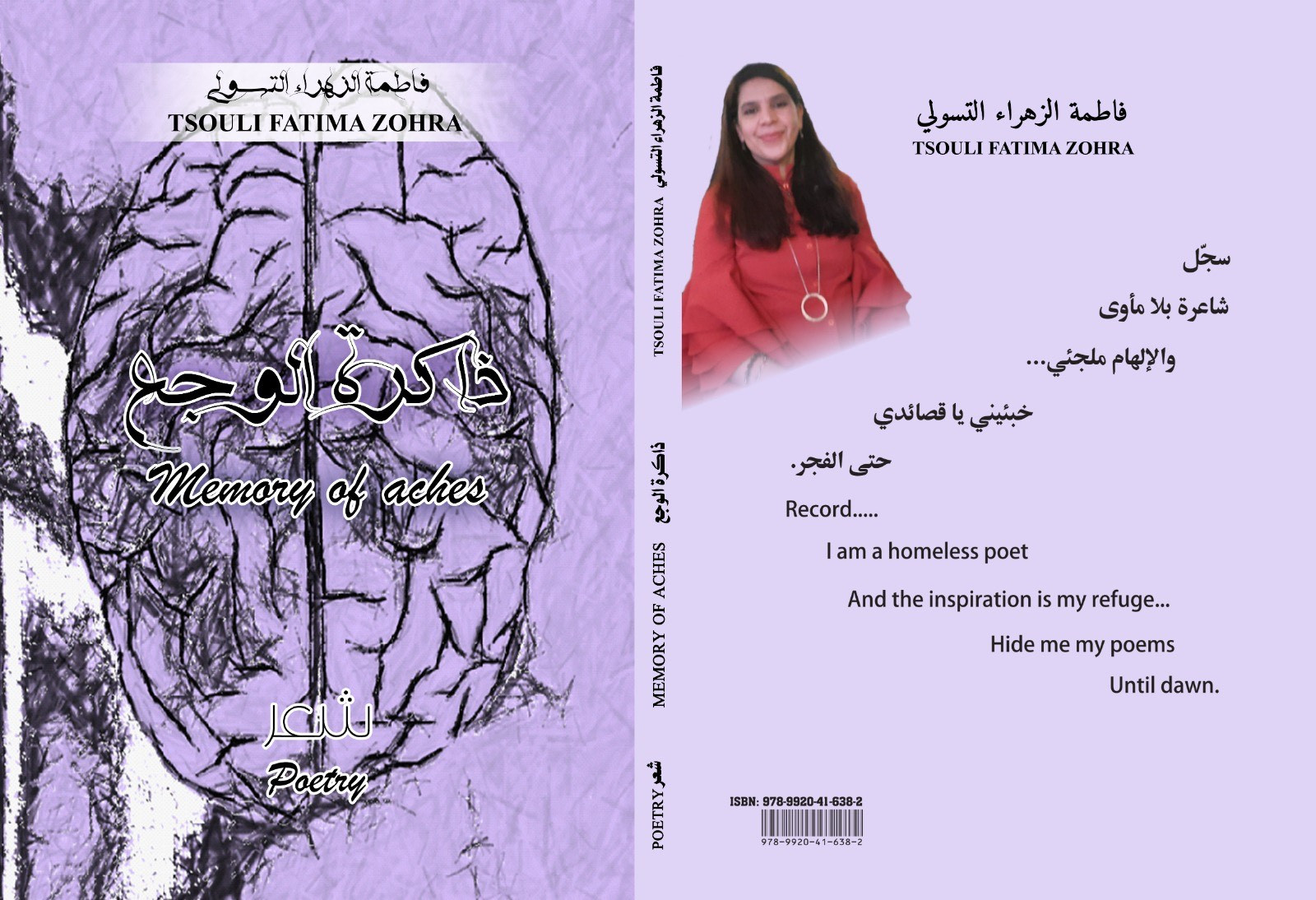 عنوان الديوان: ذاكرة الوجع (Memory of Aches) • اسم المؤلفة: فاطمة الزهراء التسولي (Tsouli Fatima Zohra) • تصنيف العمل: شعر (Poetry) • ISBN: 978-9920-41-638-2