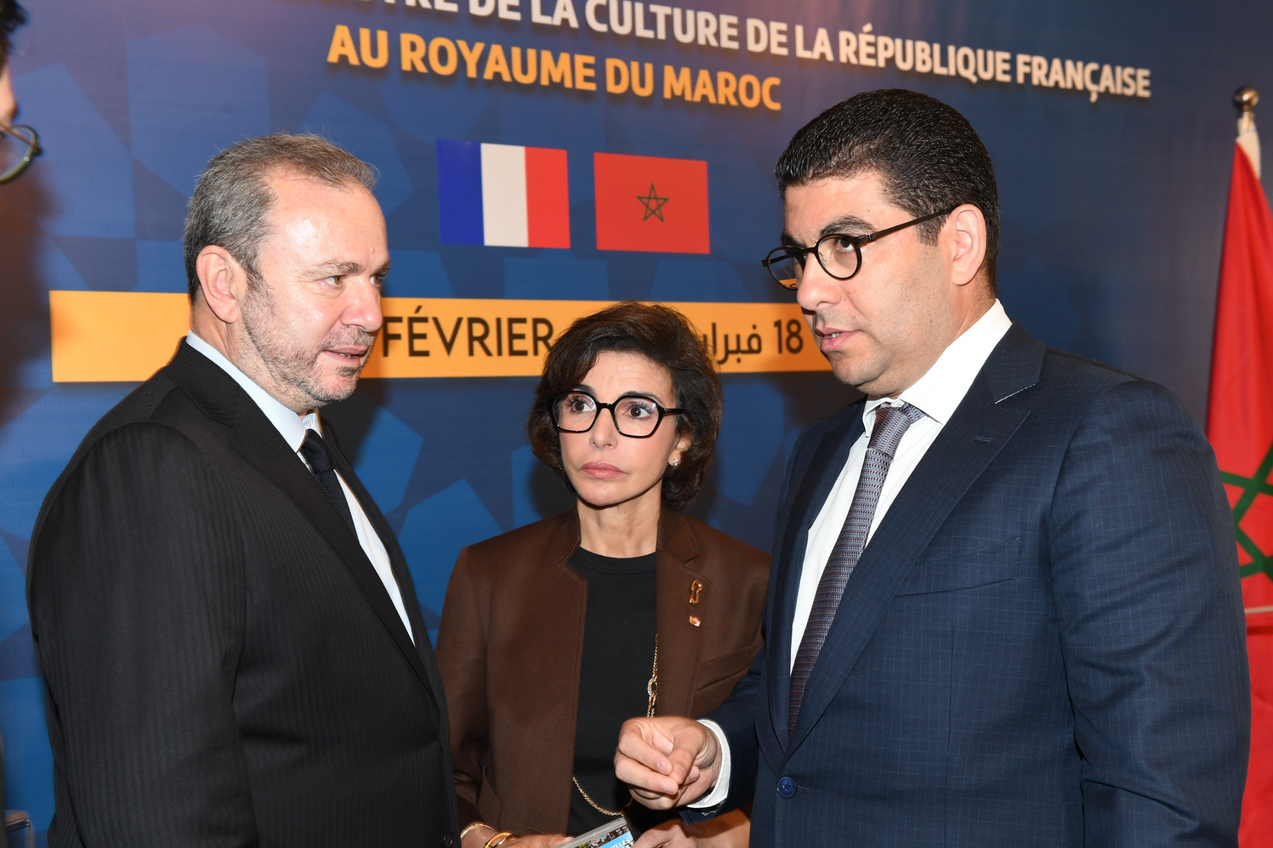 وبمقر قطاع الثقافة، أجرى وزير الشباب والثقافة والتواصل السيد محمد المهدي بنسعيد ونظيرته الفرنسية رشيدة داتي مباحثات ثنائية، تم خلالها تجديد التأكيد على متانة وقوة العلاقات المغربية الفرنسية، وبحث سبل التعاون الثقافي المشترك وتبادل زيارات المسؤولين، ووضع آلية تتبع لتنفيذ الاتفاقيات الموقعة.