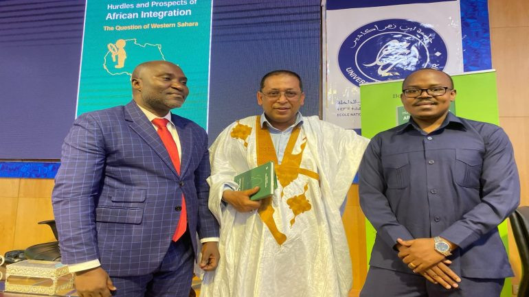 آربريس / بوشعيب خلدون : شهدت المدرسة الوطنية للتجارة والتسيير بجهة الداخلة – وادي الذهب، يوم الجمعة 25 أبريل 2025، تنظيم حفل توقيع الكتاب الجديد الموسوم بـ “Hurdles and Prospects of African Integration: The Question of Western Sahara” من تأليف الباحثين الأكاديميين التنزانيين مكسميليان جوليوس شوهليا وجيمس زوتو، بحضور ثلة من الفعاليات السياسية والدبلوماسية، ونخبة من الباحثين والطلبة والمهتمين بالشأن الثقافي والأكاديمي.